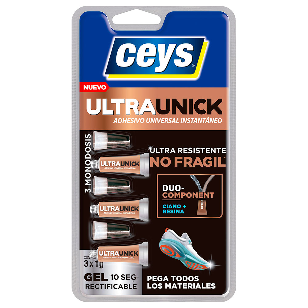Adhesivo Ceys Ultraunick Gel Monodosis es un adhesivo universal de cianoacrilato de nueva generación, que permite uniones rápidas e instantáneas en diversos materiales, ideal para reparaciones domésticas y profesionales.