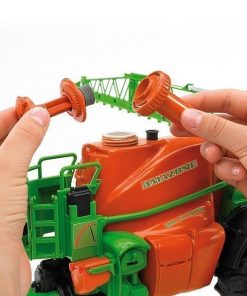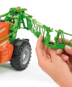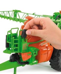 Fertilizar, sembrar y proteger las cosechas son actividades imprescindibles en la agricultura. La empresa Amazone lleva 125 años desarrollando maquinaria agrícola especializada en estos sectores y, dentro su oferta de productos se encuentran los pulverizadores arrastrados para la protección fitosanitaria. El producto estrella en este ámbito es el pulverizador 5200 de la serie UX que, con anchuras de trabajo de hasta 40 metros y una capacidad superior a 5000 litros, permite pulverizar grandes superficies sin interrupción. BRUDER, el fabricante líder de vehículos agrícolas de diseño a escala, ha desarrollado este pulverizador arrastrado en una escala de aproximadamente 1:16, y sus numerosas funciones realistas ponen de relieve su extraordinaria relevancia en este segmento del mercado. Como el de verdad, la característica más destacada del pulverizador de BRUDER es su barra de pulverización completamente funcional con tanque de agua que se puede llenar; un inteligente sistema de bombas y mangueras distribuye con total facilidad el agua sobre los «campos de nuestros pequeños agricultores» y con una anchura de los brazos extensibles de casi 1 metro, también se pueden trabajar adecuadamente grandes superficies de juego al aire libre. Además de otras funciones, sus detalles realistas como un pie de soporte abatible, una escalerilla plegable y un brazo extensible de altura regulable aumentan la diversión con este juguete fantástico y, desde luego, único.