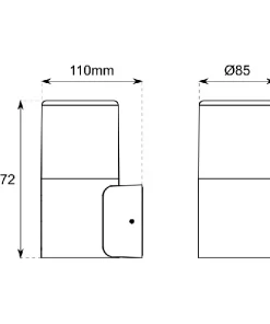 Aplique exterior IP44 para E27, de 85x110x172 mm, acabado en gris antracita y hecho de Aluminio y PC. Su difusor está opalizado para evitar deslumbramiento.