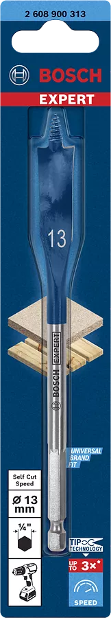 La Broca fresadora plana EXPERT 13 x 152 es la herramienta perfecta para perforar rápidamente en madera blanda. Gracias a la avanzada Bosch Tip Technology, esta broca ofrece perforaciones de alta velocidad con un esfuerzo mínimo, lo que aumenta la eficiencia en trabajos intensivos. Su punta centradora autorroscante permite que la broca se introduzca en la madera con facilidad, asegurando una perforación precisa y sin deslizamientos.