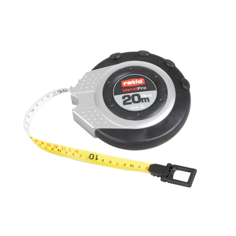 Con la cinta métrica MetalPro Ratio 20Mt, obtienes una herramienta de medición fiable, cómoda y eficiente para todo tipo de tareas de medición y construcción.
