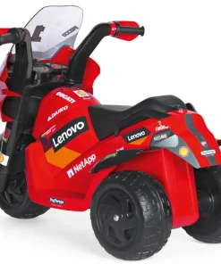 La moto funciona con una batería de 6 V / 4,5 Ah / 25 Wh y un cargador para recargarla directamente desde el vehículo a través del conector jack. La batería y el cargador están incluidos.