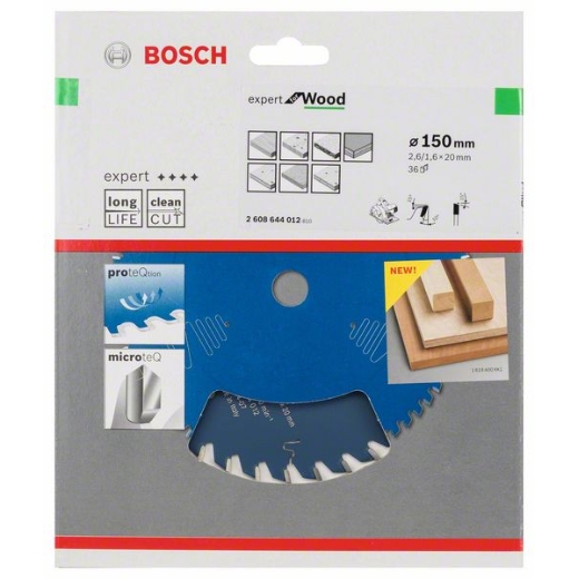 Larga vida útil de corte – Dientes MicroteQ (fabricados internamente) de carburo de alta densidad combinados con un robusto diseño ideal para un uso universal Es compatible con sierras de inmersión y portátiles En función del número de dientes, se pueden lograr diferentes resultados con los discos de sierra circular Expert for Wood, que cuentan con geometría de diente ATB (dentado alternado): un número de dientes elevado ofrece cortes limpios, mientras que un número de dientes bajo garantiza un corte sólido y eficiente. El orificio funciona con o sin anillos reductores para adaptarse a diferentes tamaños.
