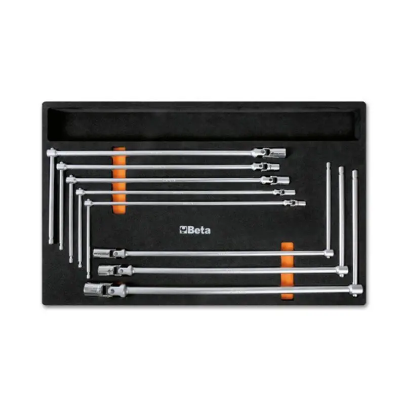 Juego compuesto por 8 llaves de caja con cardán y mango en T.
