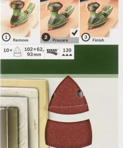 - 3 hojas de lija incluidas: Para empezar a trabajar de inmediato en diferentes superficies.