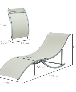 Outsunny 2 Tumbonas Plegables en Forma de S Ergonómica con Marco de Aluminio Texteline para Piscina Patio Jardín Terraza 165x61x63 cm Beige