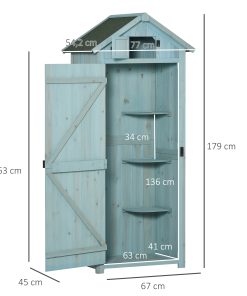 Outsunny Armario de Jardín de Madera 77×54,2×179 cm 0,3 m² Cobertizo para Almacenaje de Herramientas con 3 Estantes y 2 Puertas con Cerrojo para Patio Terraza Azul y Verde