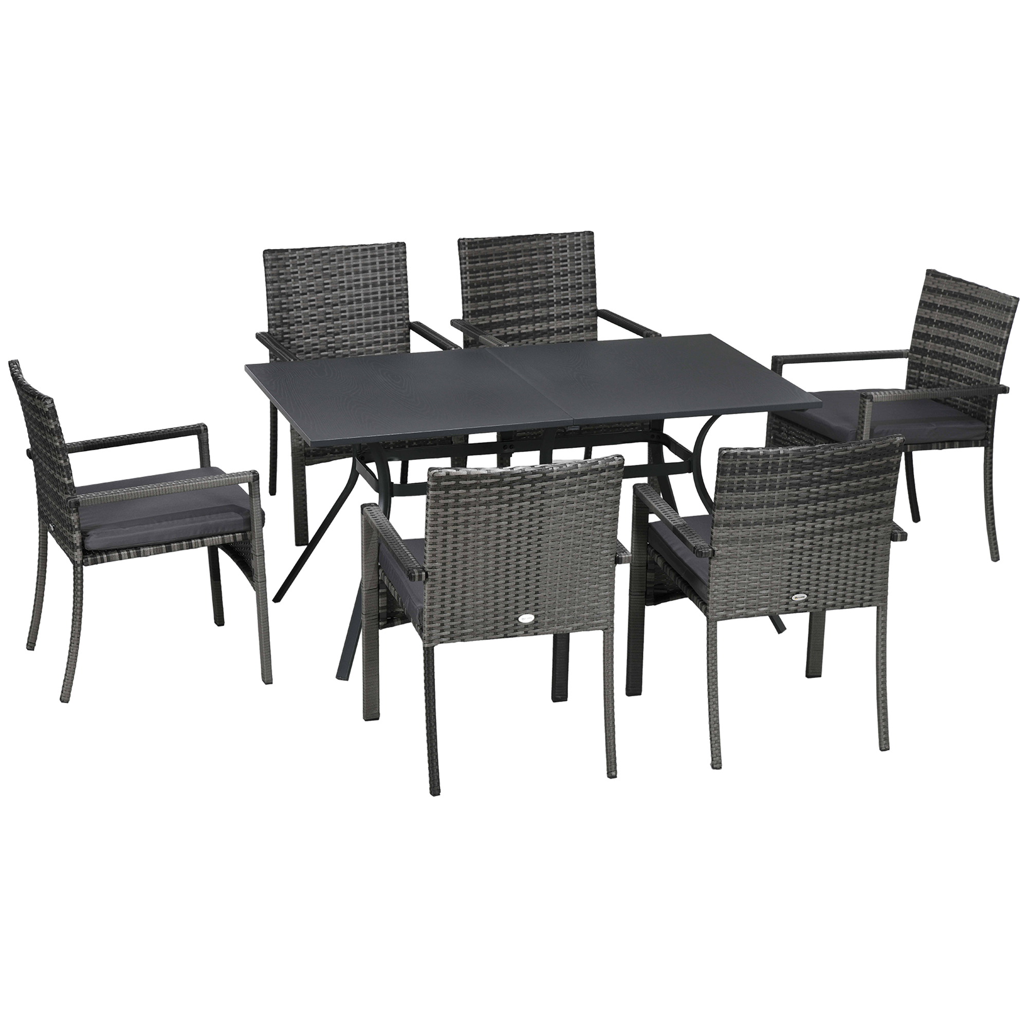 Outsunny Conjunto de Jardín de Ratán Sintético Juego de Muebles de Jardín para Exterior de Ratán de 7 Piezas Incluye 6 Sillas con Cojines Extraíbles y Mesa de Metal Gris