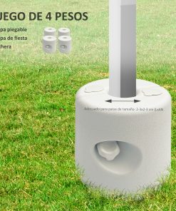 Sé el primero en valorar “Outsunny Pack de 4 Pesos para Carpas Plegables Soportes Rellenables con 9,2 kg de Agua o 12 kg de Arena Pesos para Cenador con Perillas de Fijación Ø24×25,5 cm Blanco” Cancelar la respuesta