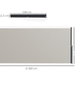 Outsunny Toldo Lateral Retráctil Pantalla Enrollable Mampara de Privacidad Impermeable y Anti-UV Protege la Privacidad para Jardín Balcón Terraza 300×140 cm Gris Claro
