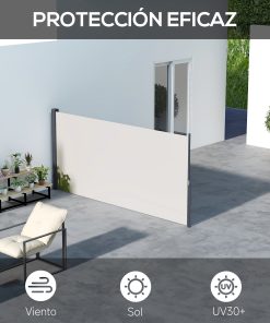 Este toldo lateral extensible de Outsunny transforma cualquier espacio exterior en un acogedor rincón sombreado al instante. Su estructura metálica resistente te ofrece una durabilidad excepcional y puedes instalarlo fácilmente en cemento o madera. Despliega y asegura el toldo lateral de balcón cómodamente con su práctico mango ergonómico; además, también es ideal como biombo en interiores. Su diseño elegante y duradero se adapta perfectamente a cualquier estilo de decoración. Características: El toldo lateral con lona UV30+ protege de manera confiable contra el viento, la intensa luz solar y la dañina radiación UV El diseño extensible permite desplegar y replegar el toldo lateral retráctil de jardín sin esfuerzo, adaptándose con flexibilidad a los cambios de condiciones climáticas El robusto marco de metal con recubrimiento en polvo garantiza una estabilidad y fiabilidad duraderas La capacidad de fijar el marco en concreto, cemento o madera asegura una estabilidad y seguridad óptimas Especificaciones: Color: gris claro Material: metal, aluminio, poliéster Medidas totales: 300×140 cm (LxAL) Medidas plegado: 140×12,5×9 cm (LxANxAL) Medidas de la lona: 290×132 cm (ANxAL) Referencia: 840-257V01LG El paquete incluye: ● 1 x Toldo lateral; ● Tornillos de expansión; ● 1 x Manual de instrucciones