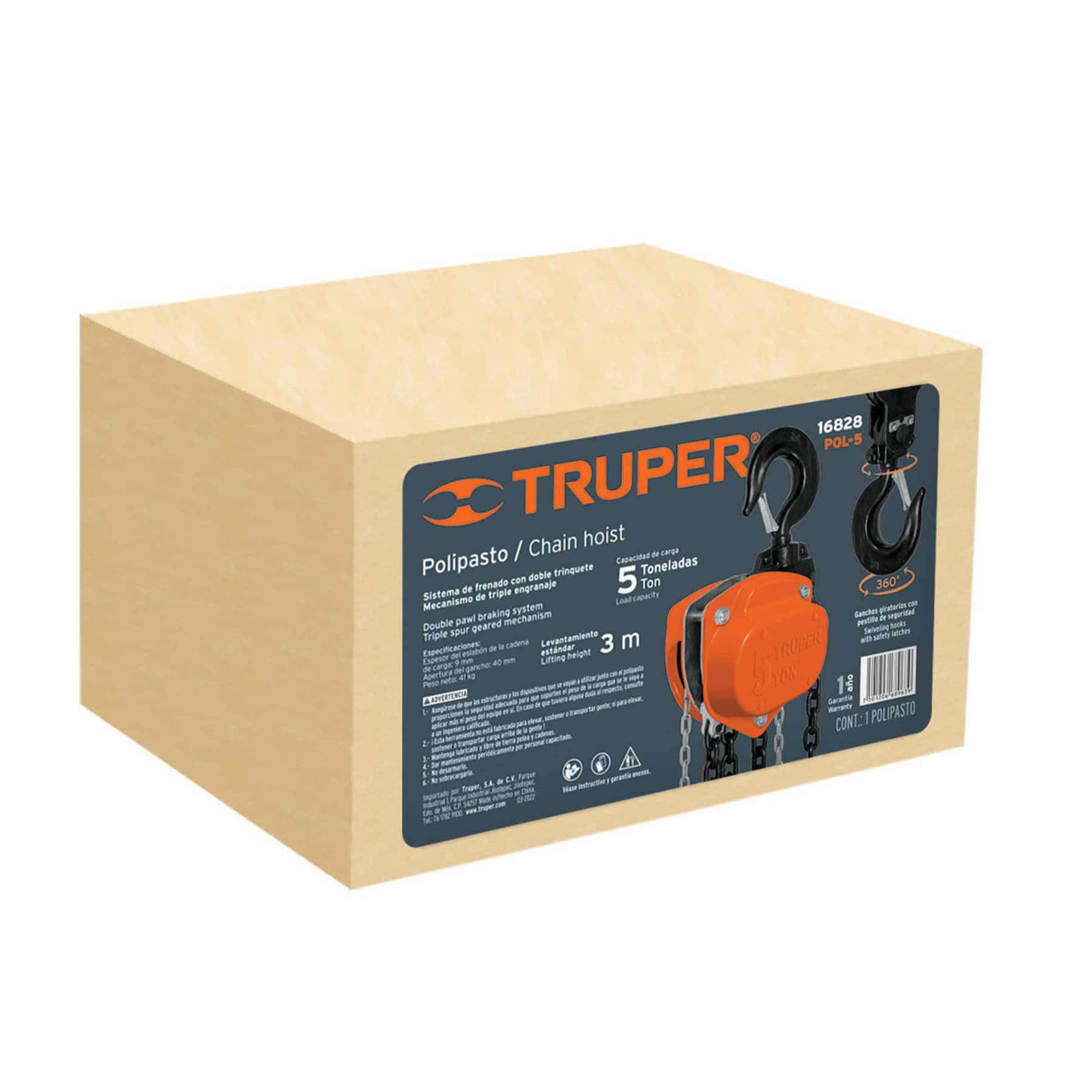 Polipasto de cadena de 5 ton, Truper POL-5 16828