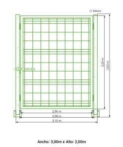 Puerta vehicular 2 hojas para malla simple torsión galvanizada 1,00 metro alto x 5,00 metros ancho