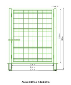 Puerta vehicular 2 hojas para malla simple torsión lacada verde 1,50 metros alto x 6,00 metros ancho
