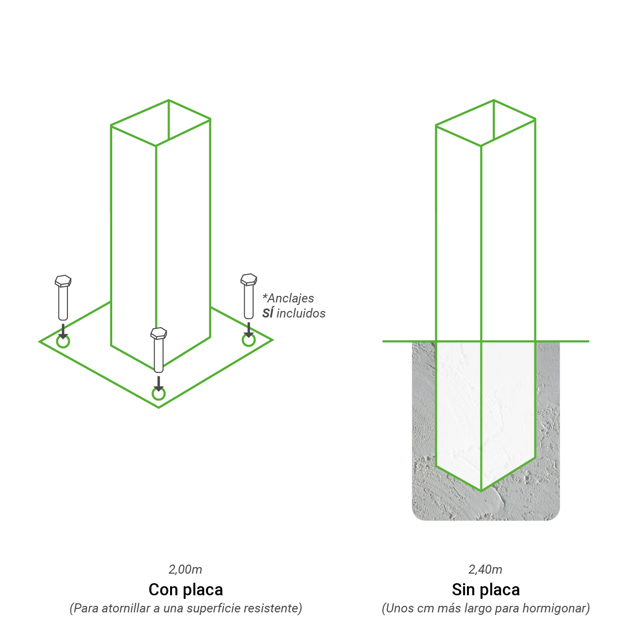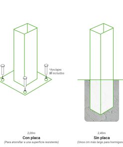 - Postes 60×60 en los extremos para sujeción de malla