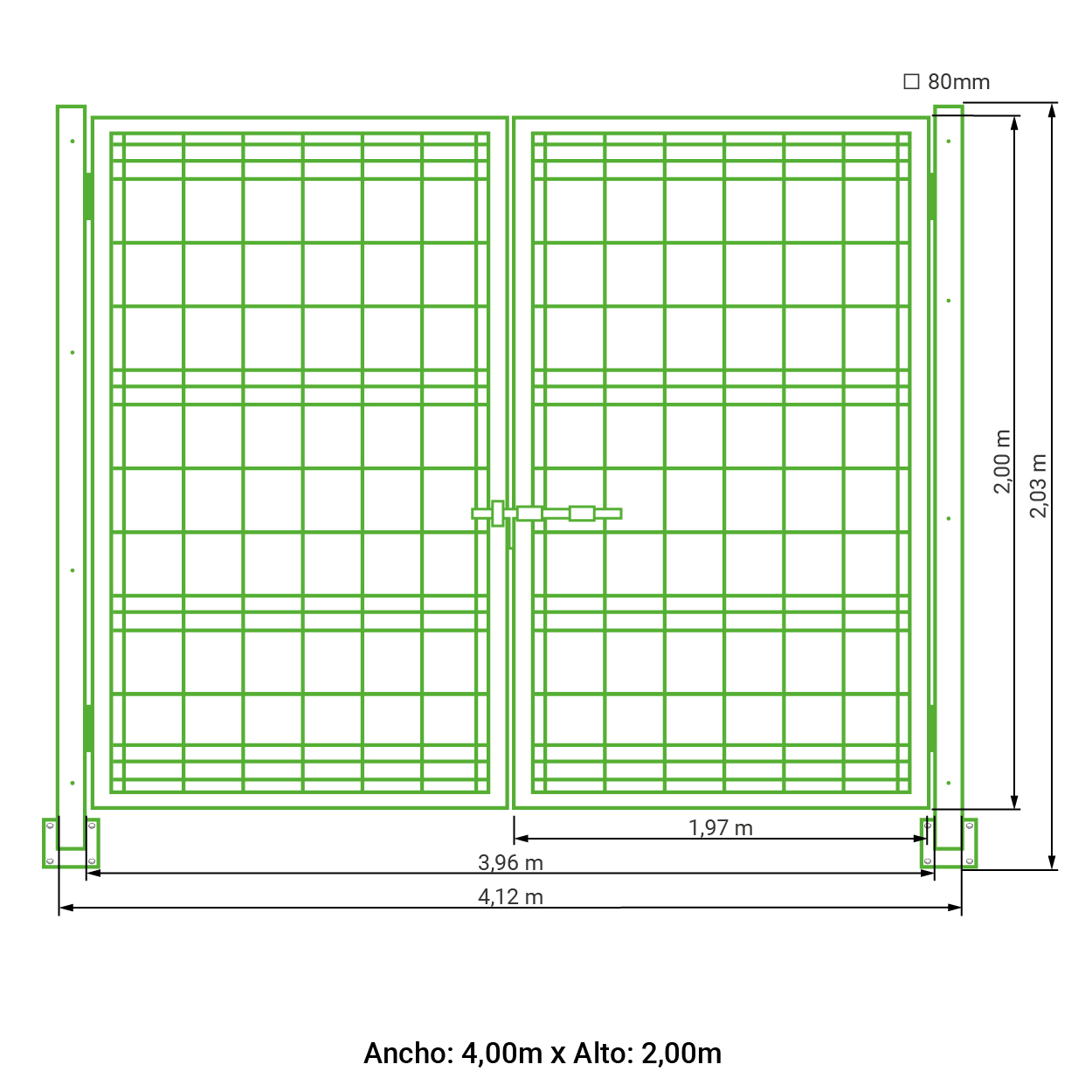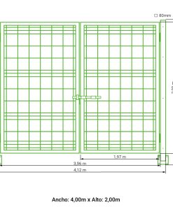 Puerta vehicular 2 hojas para malla simple torsión galvanizada 1,50 metros alto x 4,00 metros ancho