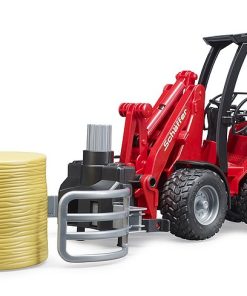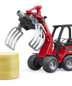 Desde hace más de 50 años, Schäffer desarrolla cargadoras sobre ruedas para agricultura, jardinería y arquitectura paisajística. La clase compacta 2000 destaca entre los productos de Schäffer como una de sus series de mayor éxito. Ofrecer grandes prestaciones en el espacio más pequeño es la gran ventaja de esta cargadora. Este importante y versátil vehículo para triunfar en el sector agrícola está ahora disponible en escala 1:16 de BRUDER en combinación con una pinza para pacas. Para brindar la máxima maniobrabilidad, este vehículo, al igual que el original, dispone de una dirección pivotante funcional. Además, también el brazo de carga y la pala funcionan como en el modelo original a escala completa. Para la seguridad de la figura bworld, que cabe cómodamente en el asiento del conductor, se incluye un arco protector sólido. Para el transporte y la distribución de paja y heno, la nueva pinza para pacas es una excelente ayuda para que todo pequeño agricultor pueda transportar la paca redonda suministrada al establo y descargarla. La pinza se abre y se cierra simplemente girando la rueda de ajuste superior.