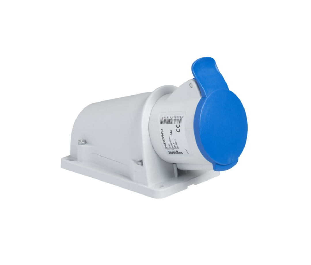 Panel Mounted Straight Industrial Socket with Wander Plug – 2P+N – 32A – 250V – IP44